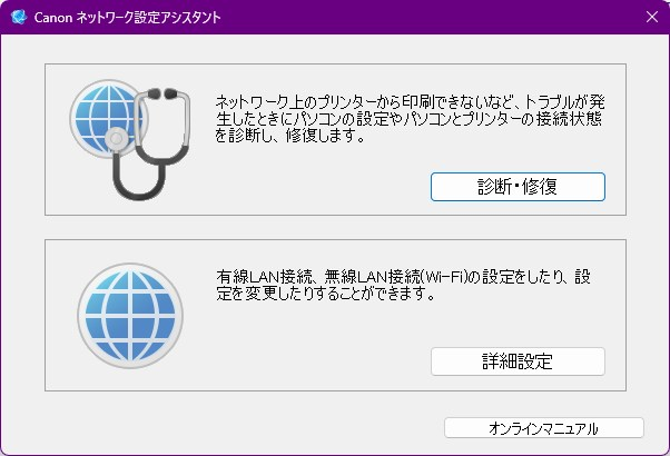 ❸ネットワーク設定アシスタントをインストール(←アプリケーションはメーカー、型番によって異なります今回CANON製TS3530液晶画面が無いプリンター)